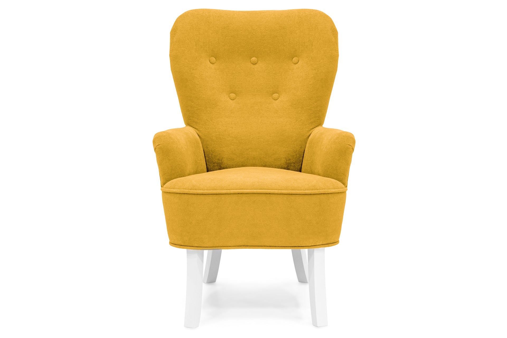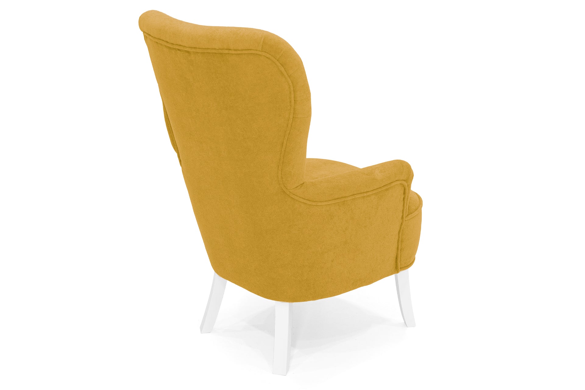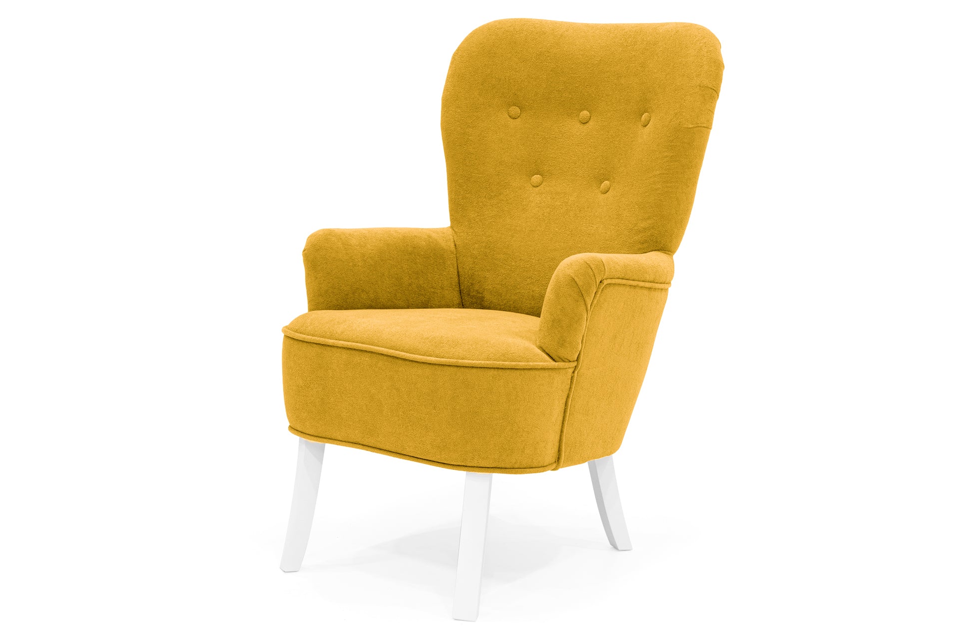 Stylowe nogi: Lakierowane na biało drewniane nóżki o wysokości 23 cm nadają lekkości całej konstrukcji i podkreślają stylowy charakter fotela.