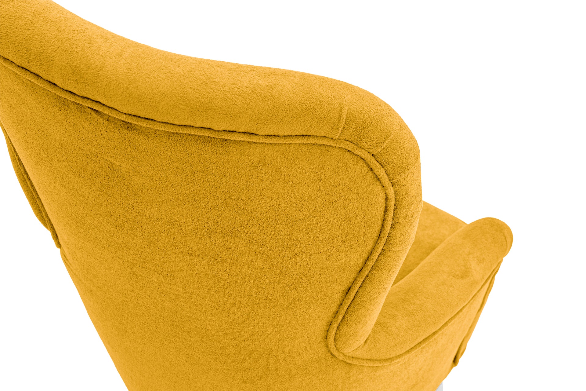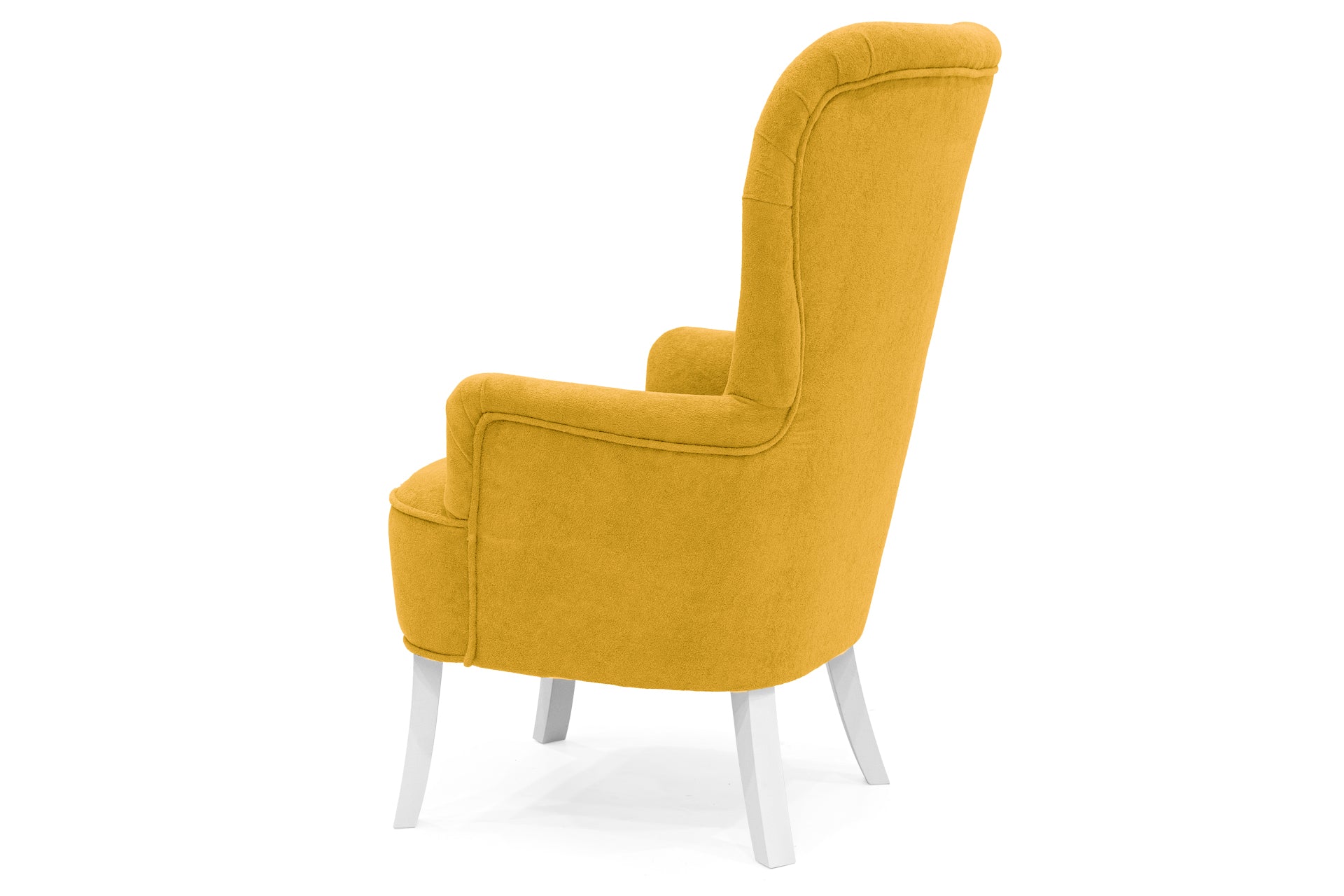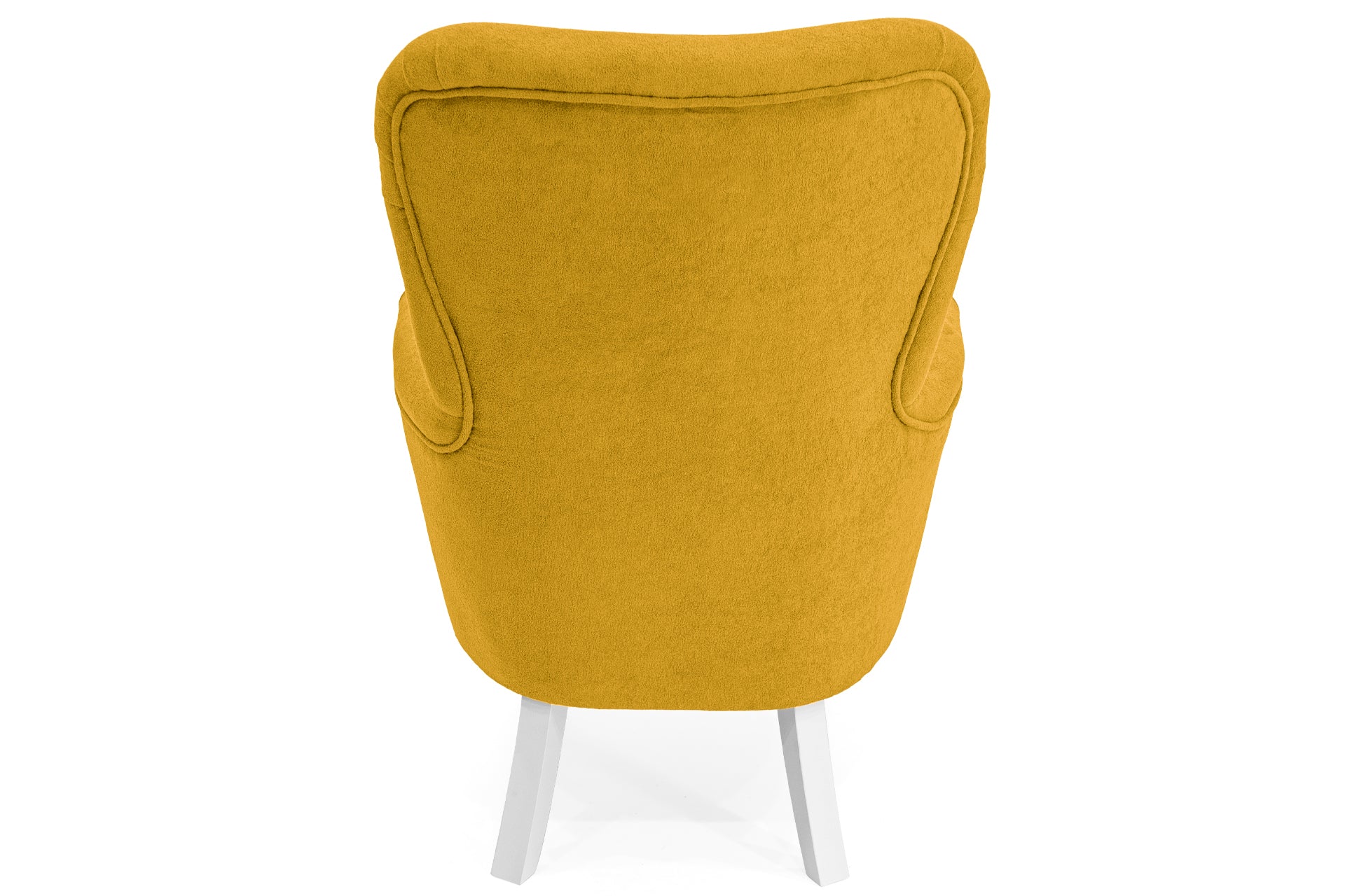 Stylowe nogi: Lakierowane na biało drewniane nóżki o wysokości 23 cm nadają lekkości całej konstrukcji i podkreślają stylowy charakter fotela.