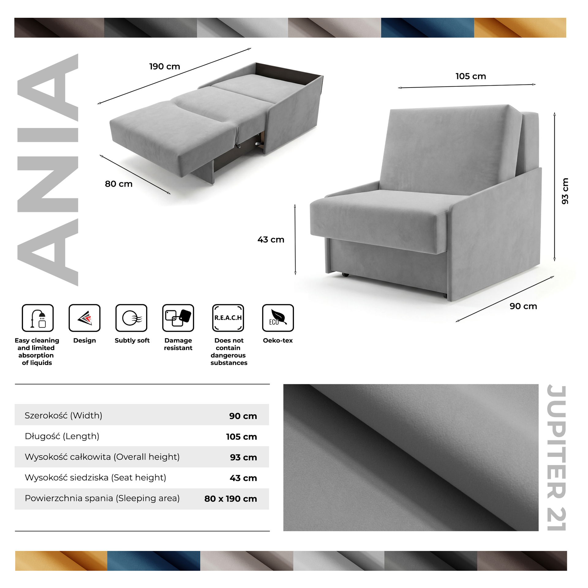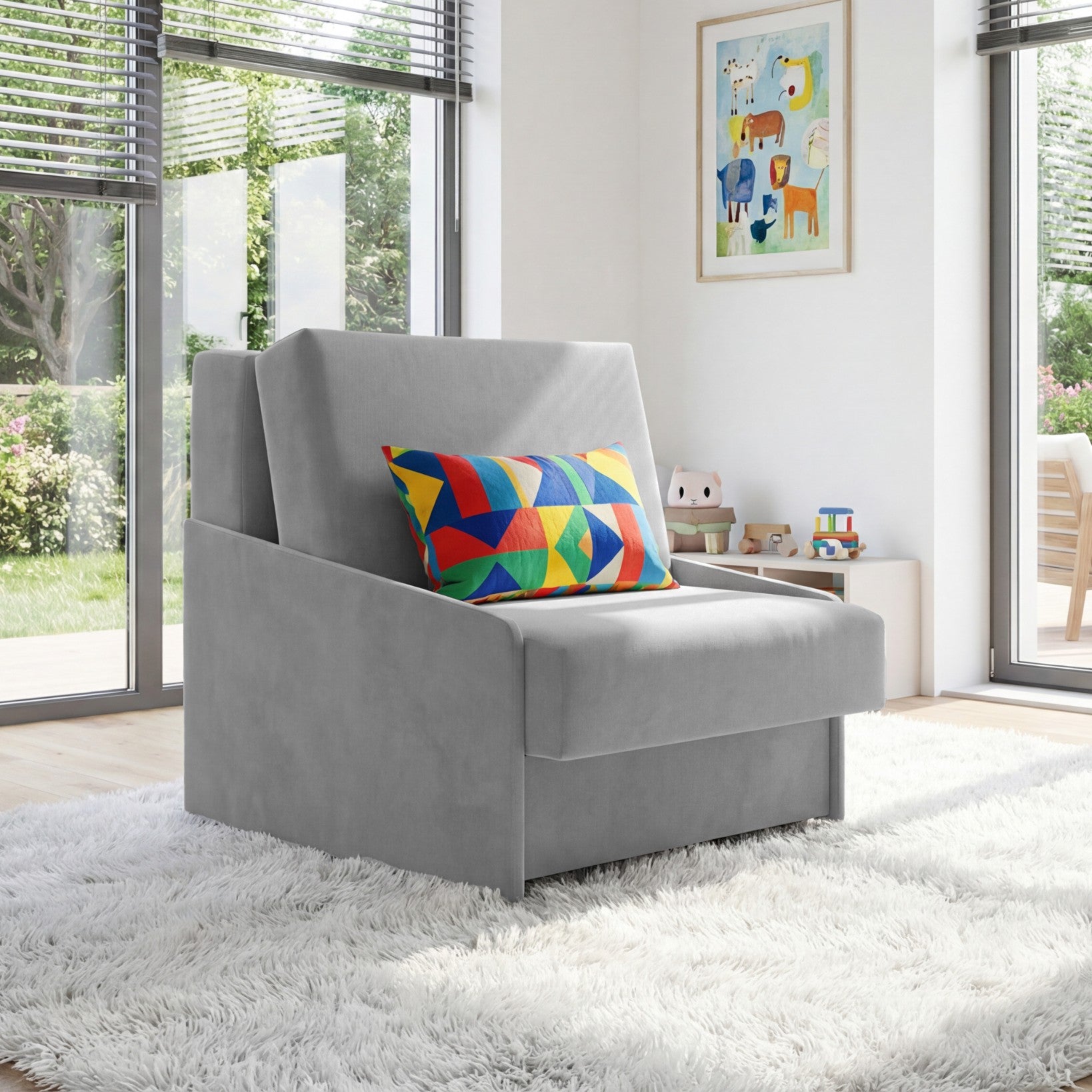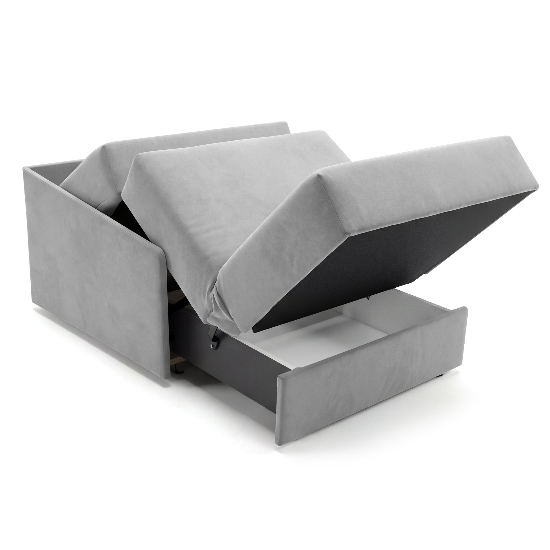 Fotel rozkładany z funkcją łóżka i schowkiem, rozkładany fotel tapicerowany, obicie aksamitne (Jupiter Velvet), fotel zajmujący mało miejsca w salonie, 90 x 105 cm (szary) | Szybko rozkładany, idealny do małych pomieszczeń, łatwy w pielęgnacji, miękka tap