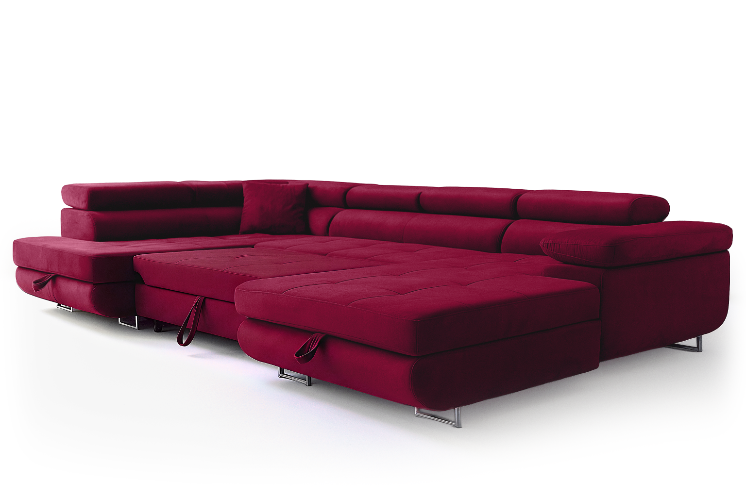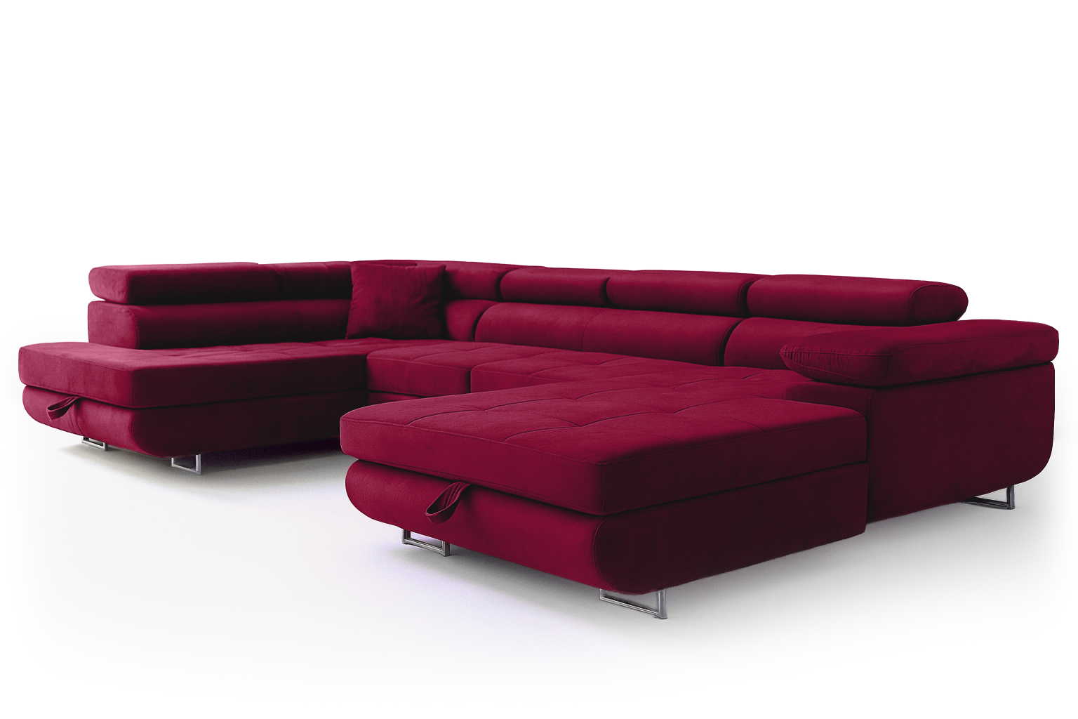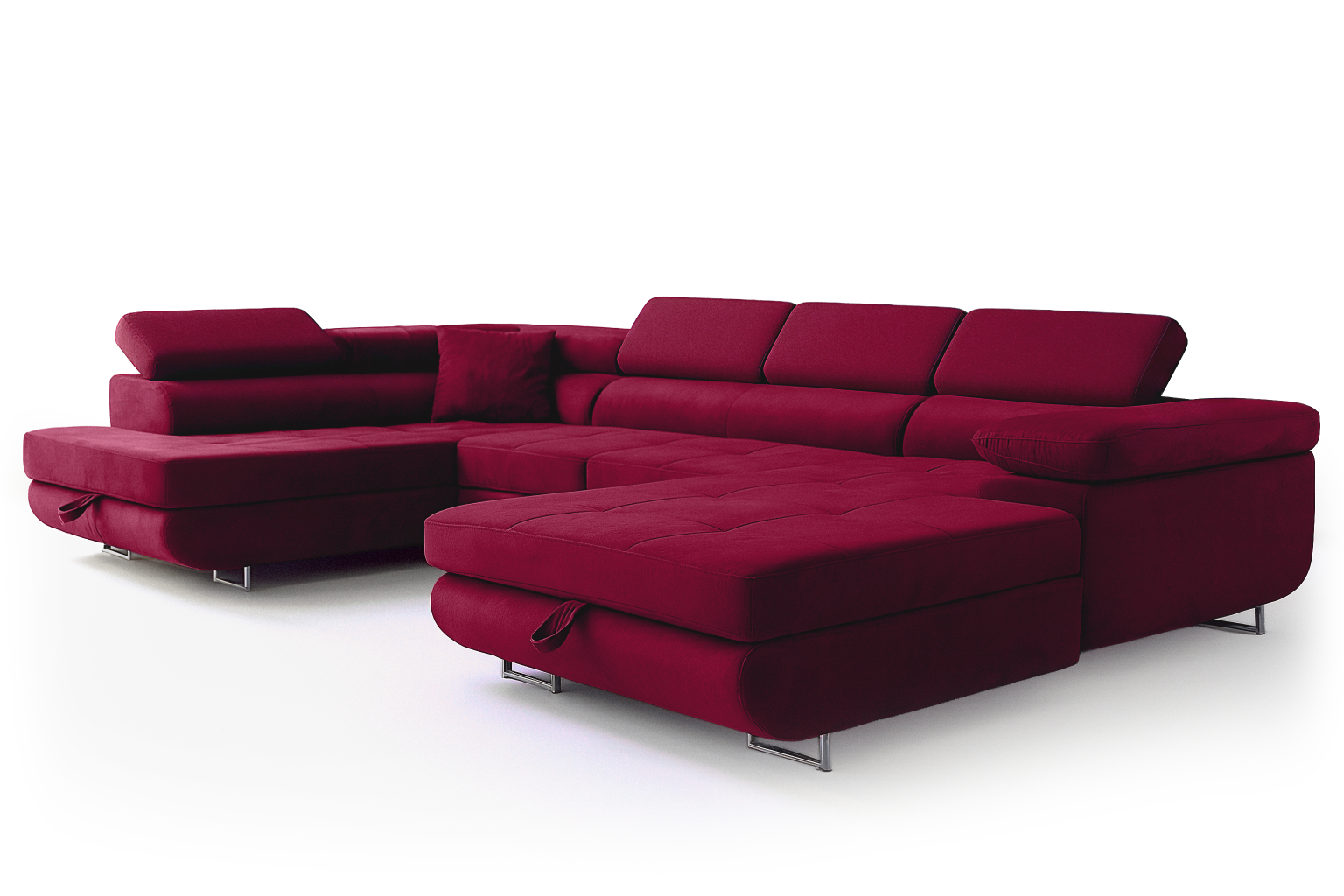 Narożnik Aller U Monolith XXL z funkcją spania, 2 schowkami i regulowanymi zagłówkami — lewy, czerwony