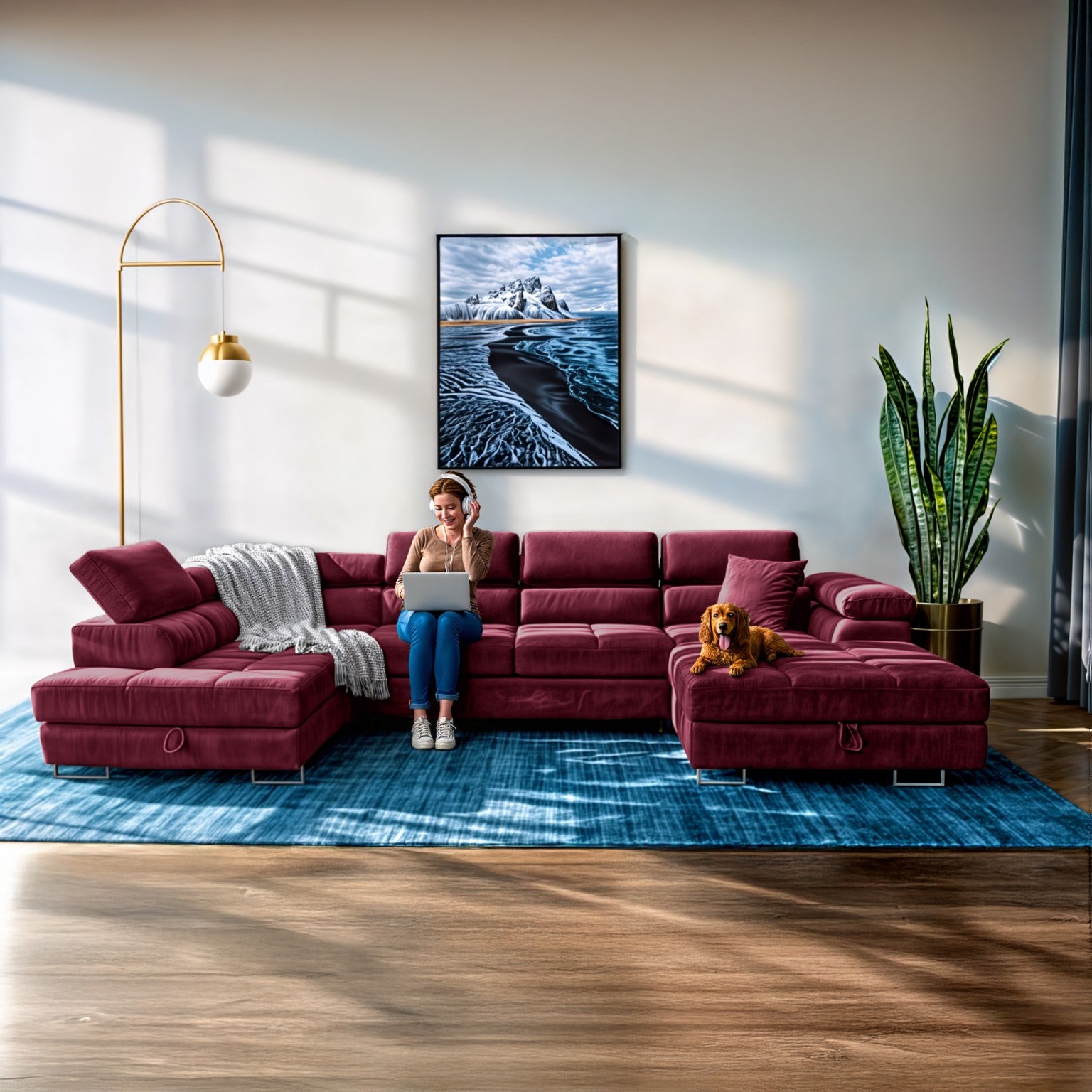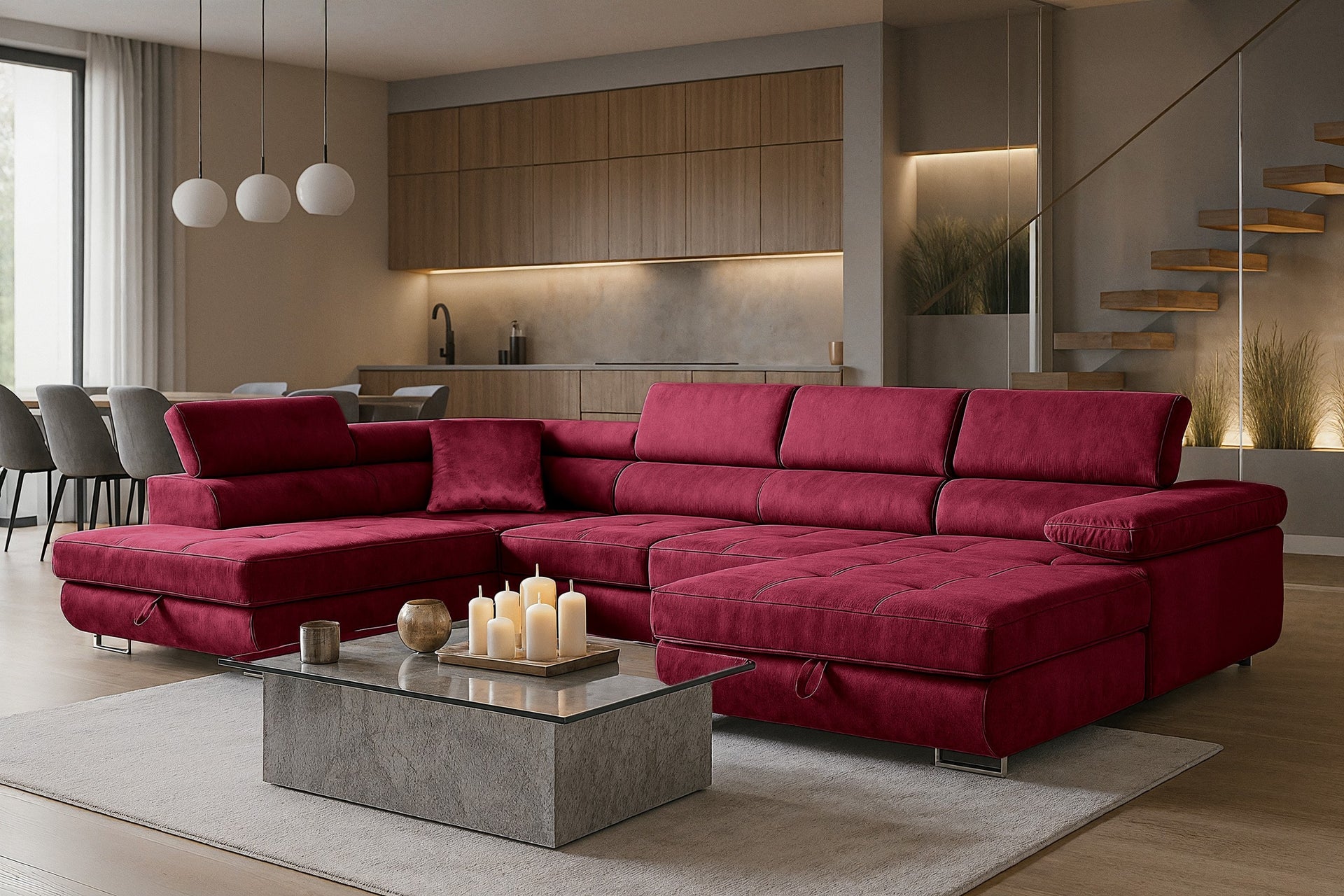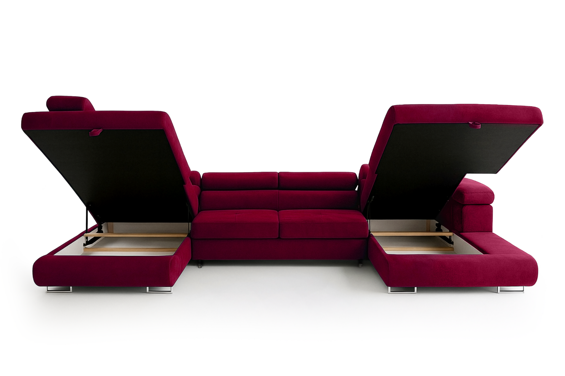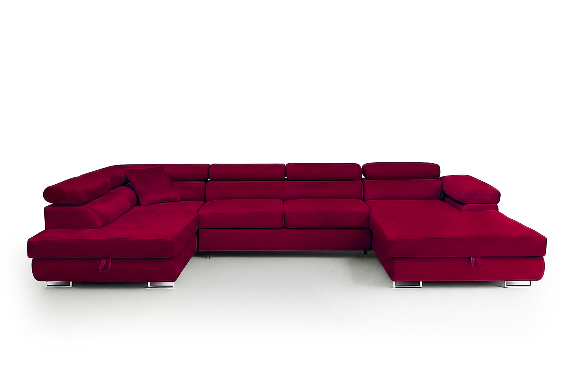 Narożnik Aller U Monolith XXL z funkcją spania, 2 schowkami i regulowanymi zagłówkami — lewy, czerwony