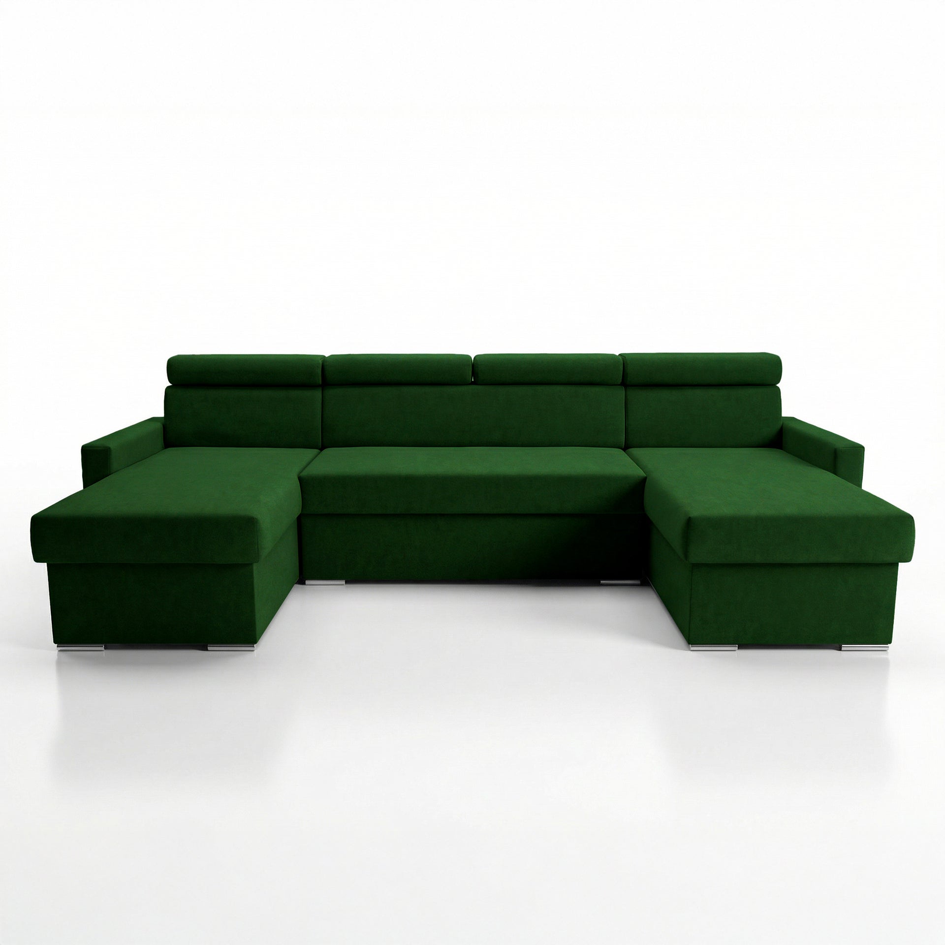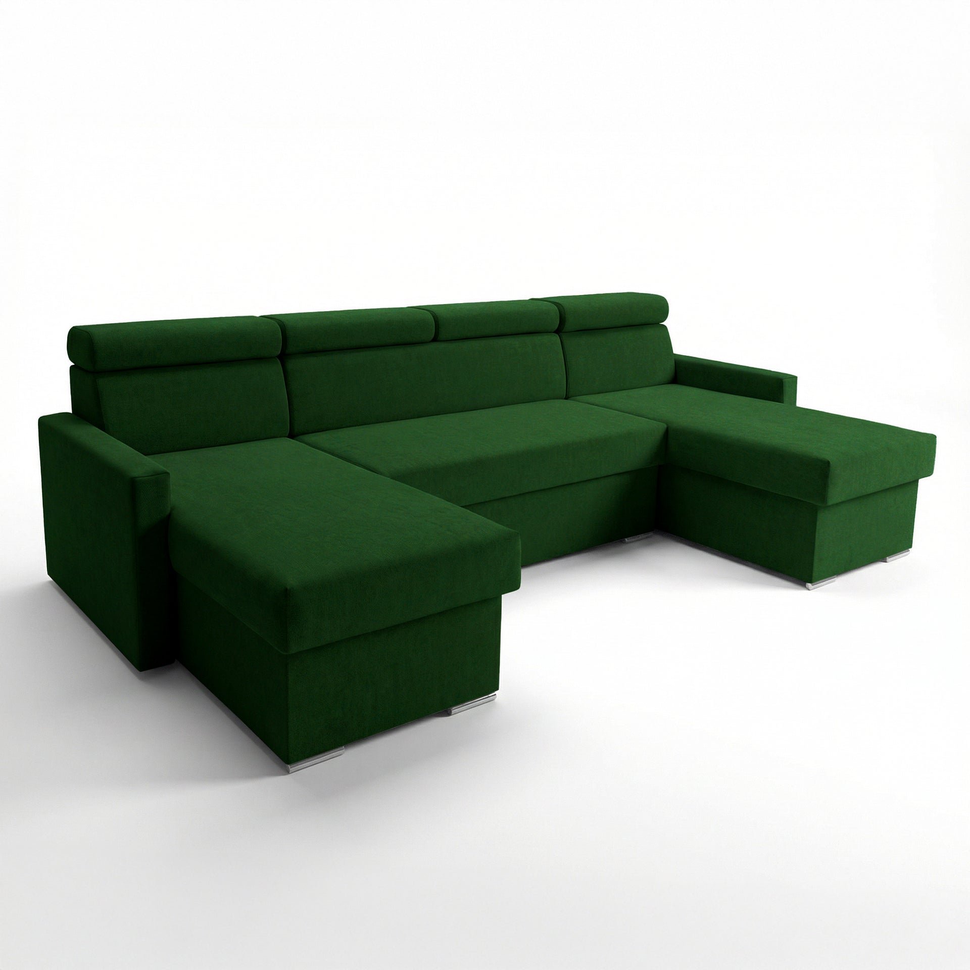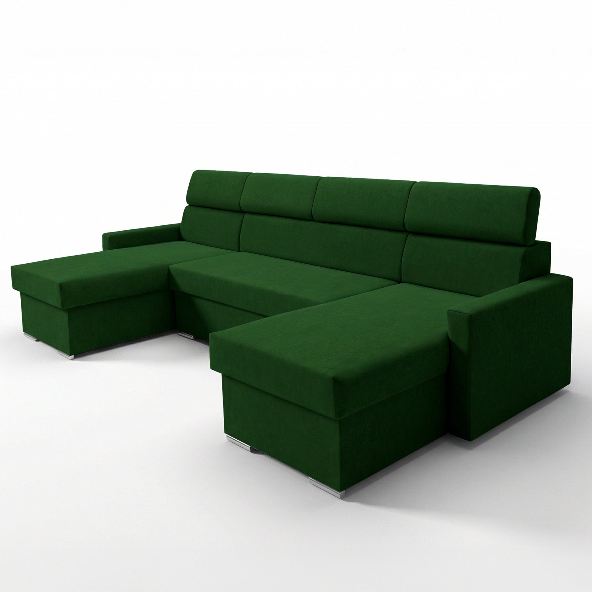 Narożnik Vega U na wymiar | Regulowana szerokość | Funkcja spania 2 schowki na pościel Kształt litery U Regulowane zagłówki Aksamitna tkanina Best 305 x 151 cm (kolor butelkowa zieleń)