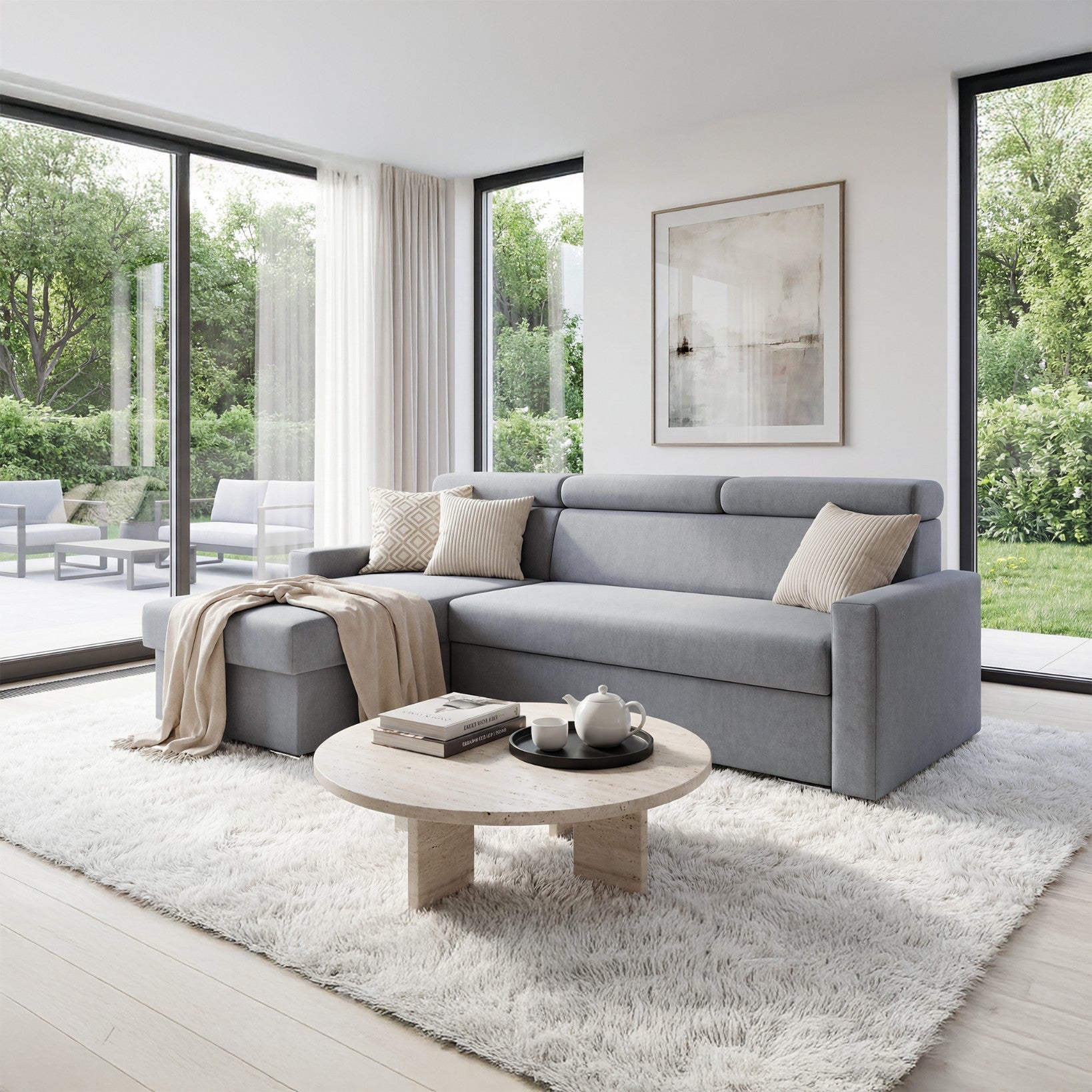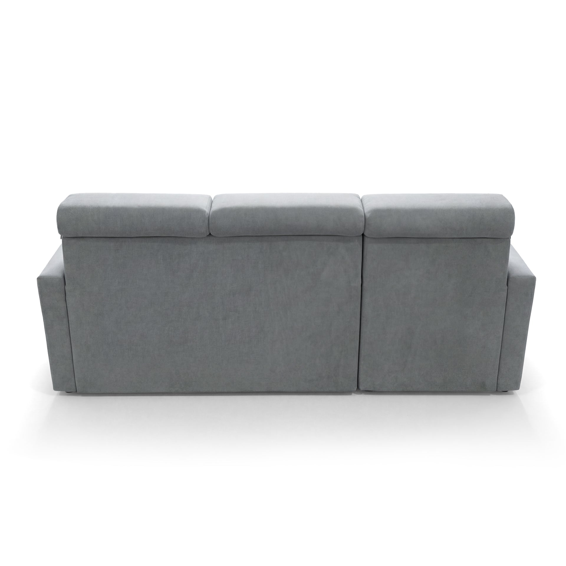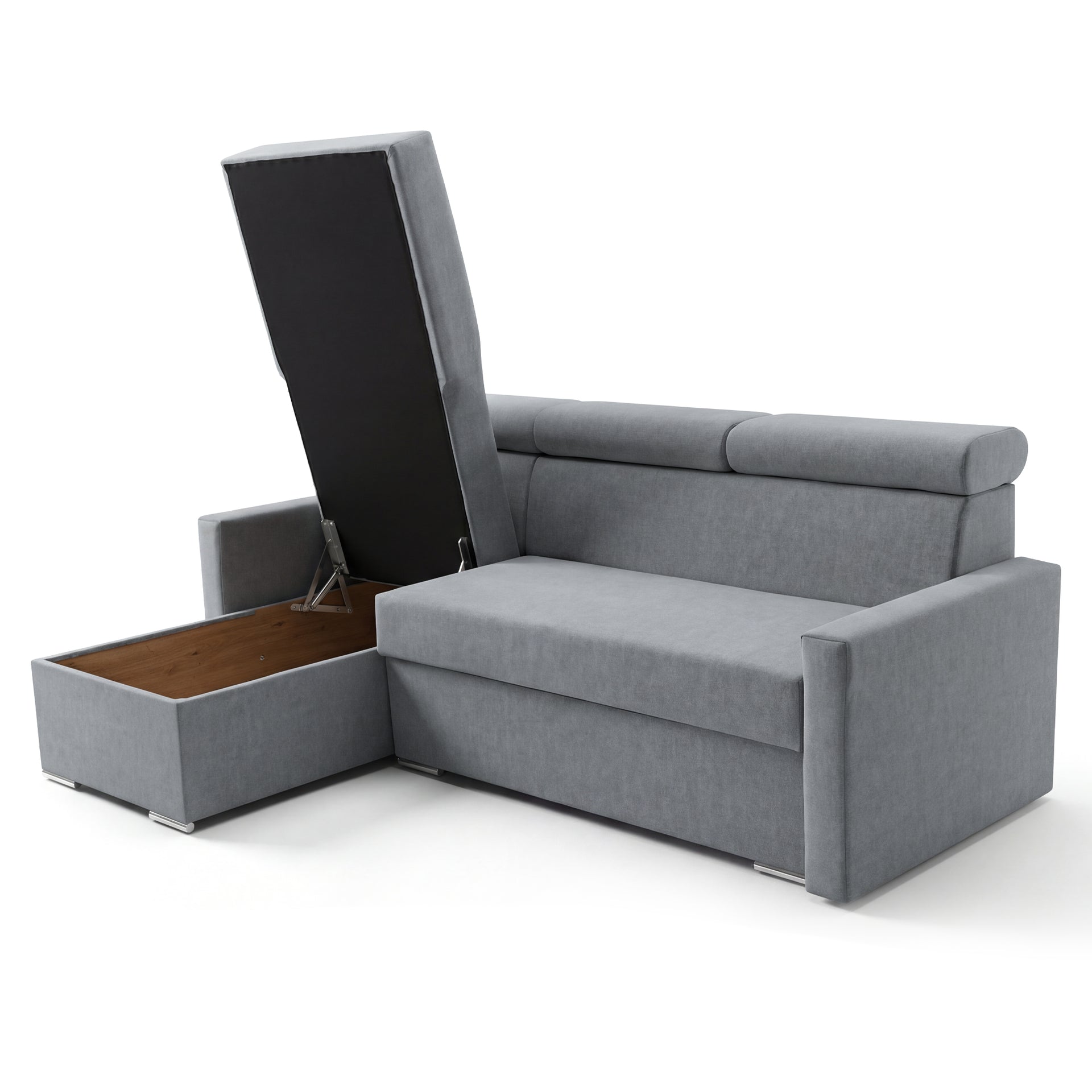 SOFILAND Narożnik Vega L z funkcją spania i pojemnikiem na pościel – szerokość regulowana indywidualnie do +20 cm – konstrukcja przylegająca do ściany – wolnostojący – aksamitna tkanina Best – przyjazny dla zwierząt (szary)