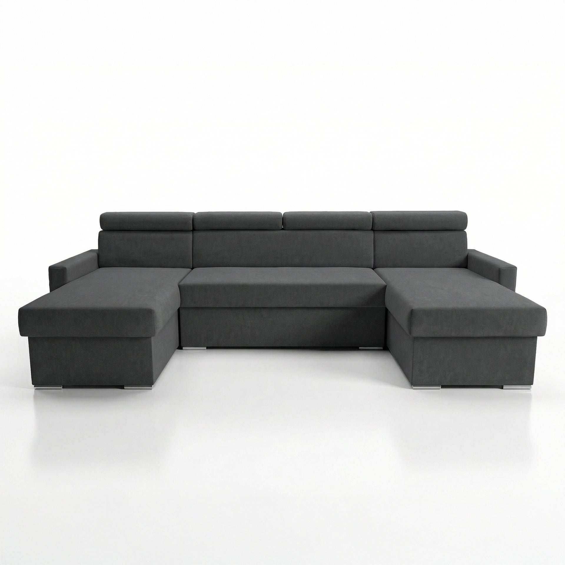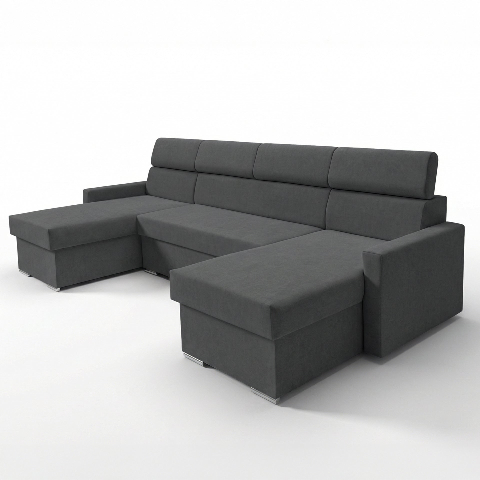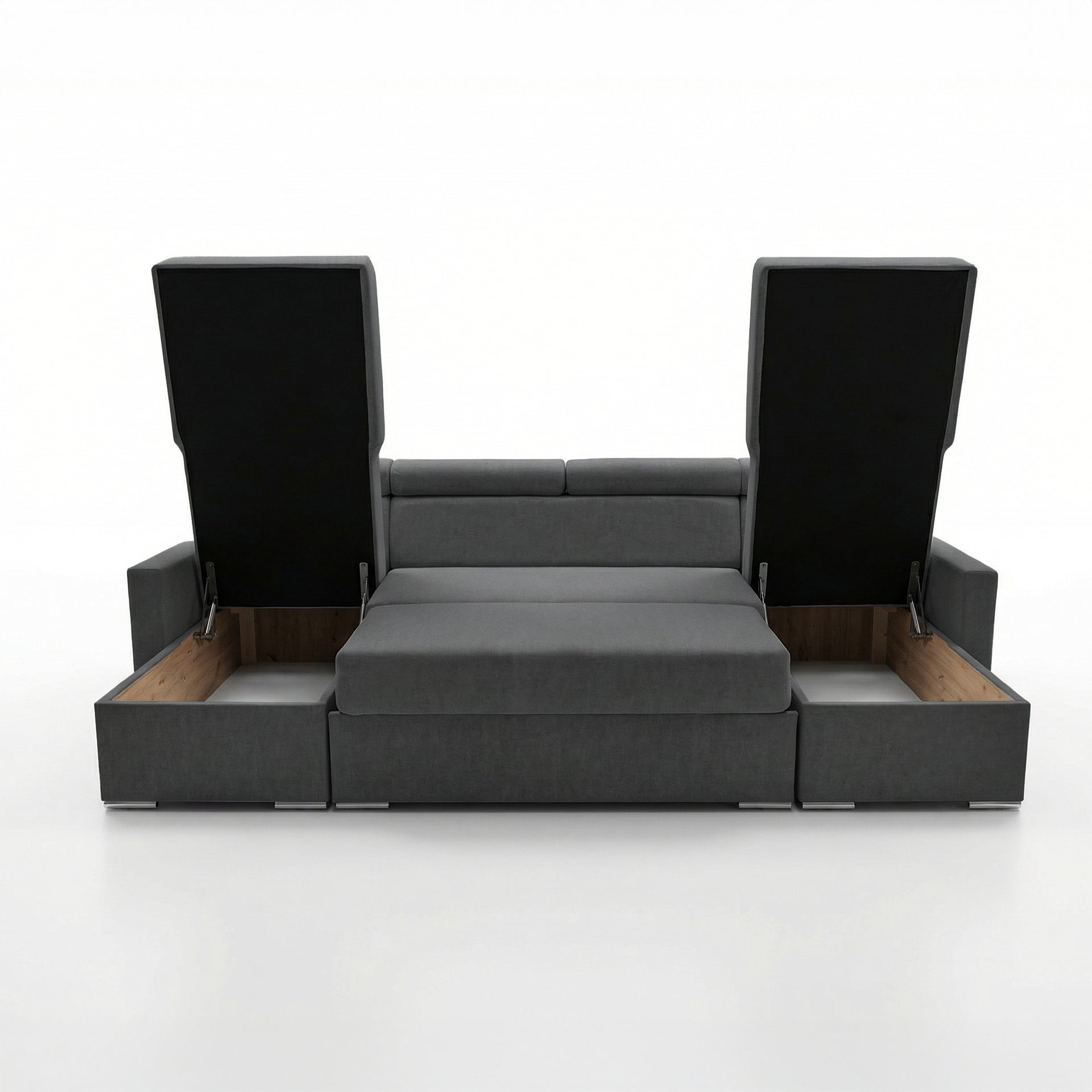 Vega U Zestaw wypoczynkowy z funkcją spania i 2 schowkami na pościel Narożnik w kształcie litery U Regulowane zagłówki Aksamitna tkanina Best 305x151 cm (grafit)